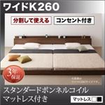 フロアベッド ワイドキング260(SD+D)【スタンダードボンネルコイルマットレス付】フレームカラー:ウォルナットブラウン マットレスカラー:ホワイト 将来分割して使える・大型モダンフロアベッド LAUTUS ラトゥース