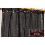カラーレースカーテン 2枚組 100×176 ブラック ミラーレース 見えにくい 洗える アジャスターフック付き セルバ2