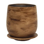 インテリアポット 陶器製植木鉢 ウィート トールボール 16cm ライトブラウン 皿付