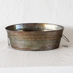 カルチベーター ブリキ アンティークブラウン ハンドル付楕円籠 L 38cm